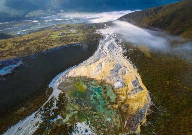 (鸟瞰泉华滩,图虫创意)