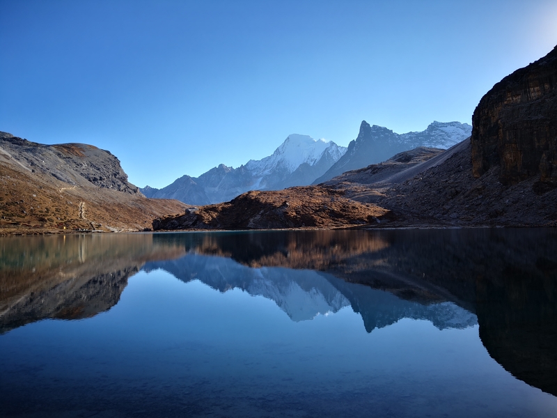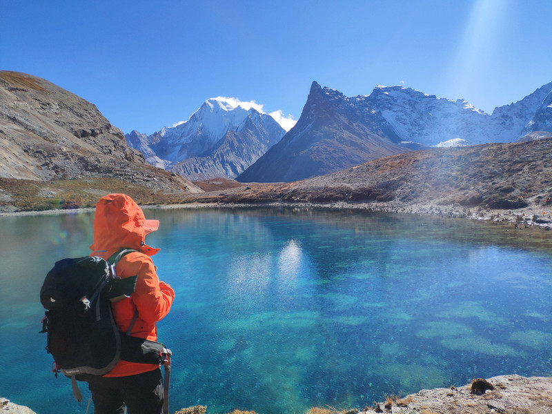 珍珠海——跌落人间的深色翡翠。水平如镜,在仙乃日雪山的怀抱中显得格外的神圣。波光粼粼,神山、湖畔的景色倒影在纯净的珍珠湖中,仿佛水下也有另一个世界。