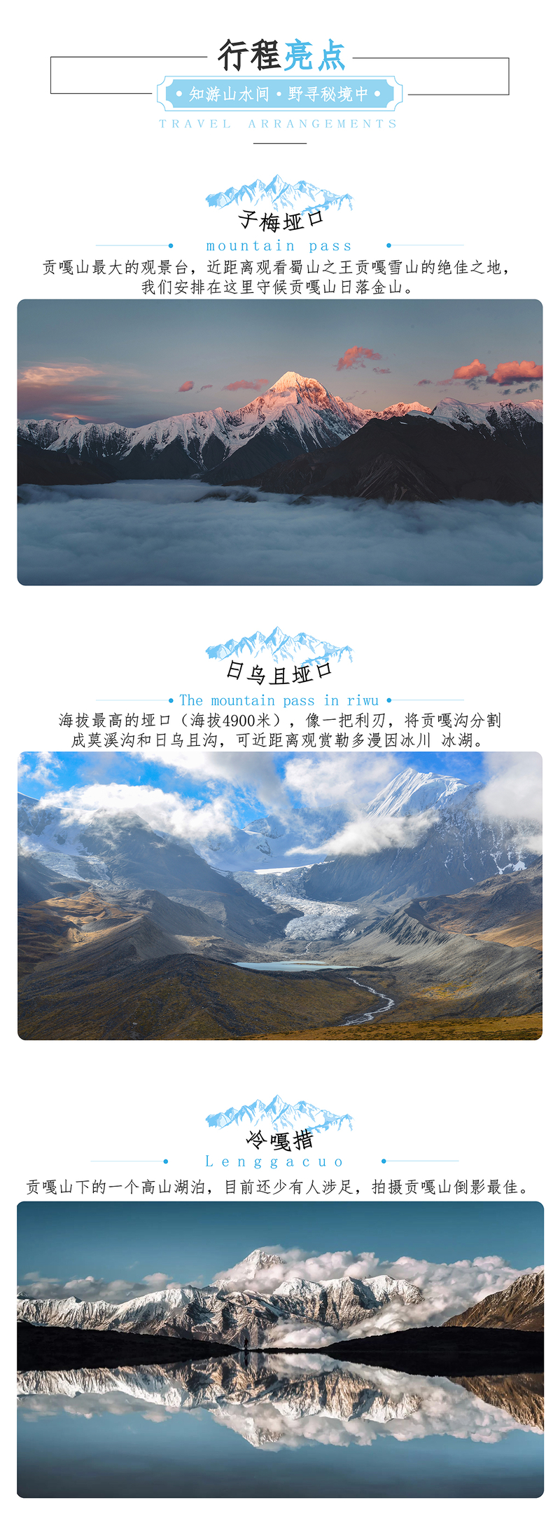 在活动执行过程中,如因天气因素(大雪等)导致日乌且垭口无法通过,行程则调整如下: